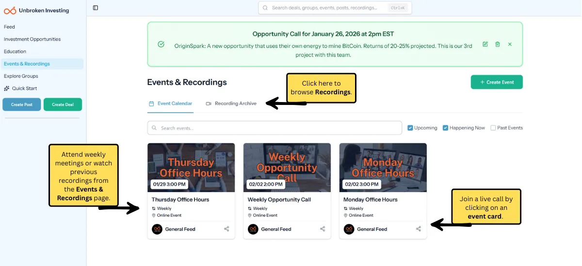 Everything inside Unbroken Investing—education, opportunities, community, and calls—is built around this operating system.